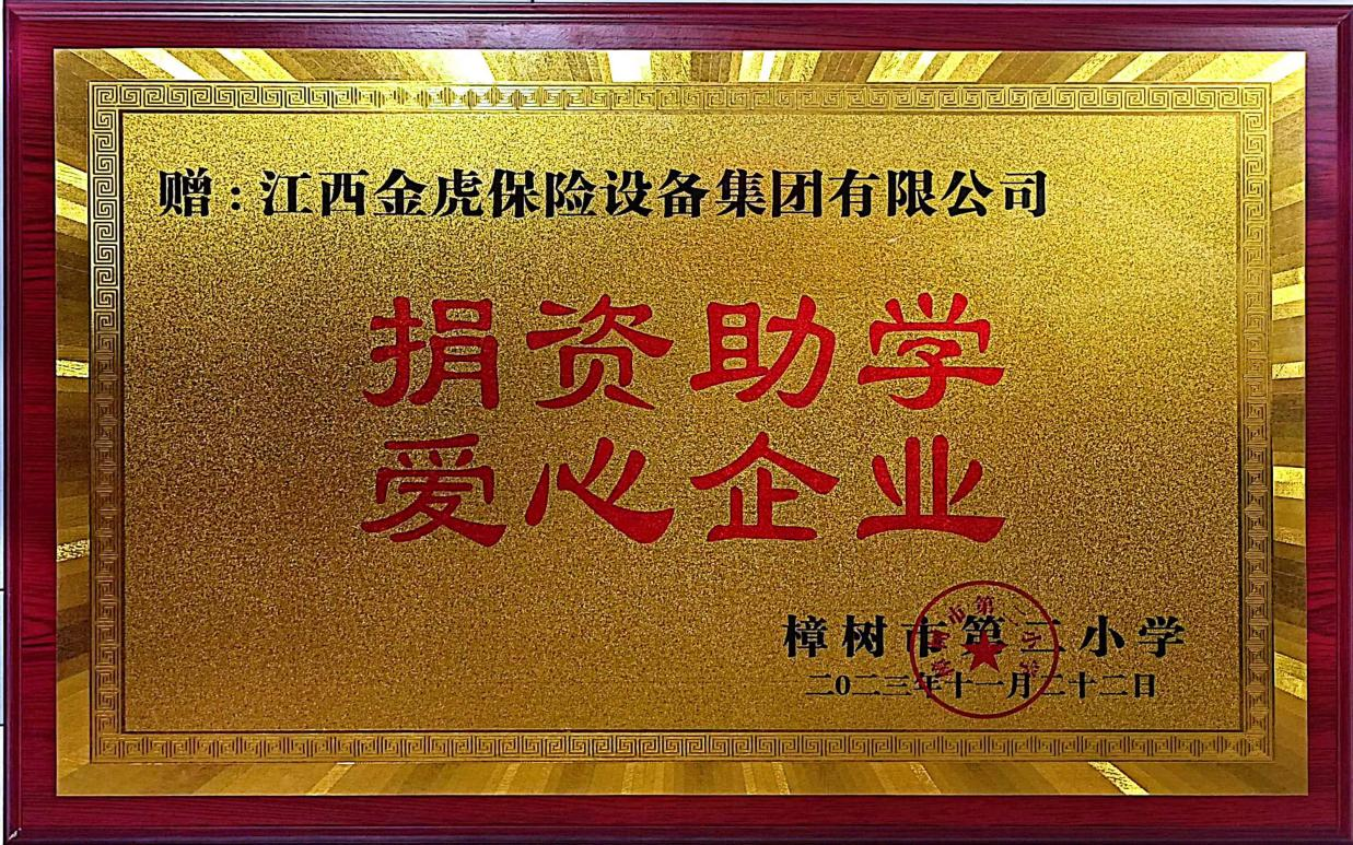 近日,金虎集團收到江西省樟樹市第二小學贈予的“捐資助學,愛心企業(yè)”獎牌,感謝金虎集團給予的熱心捐贈。